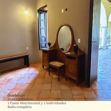 Contamos con 4 habitaciones amplias y confortables que puedes reservar por separado (Ideal para familias y parejas. Amantes de la historia y la naturaleza) o rentar la casa completa (perfecta para grupos grandes.